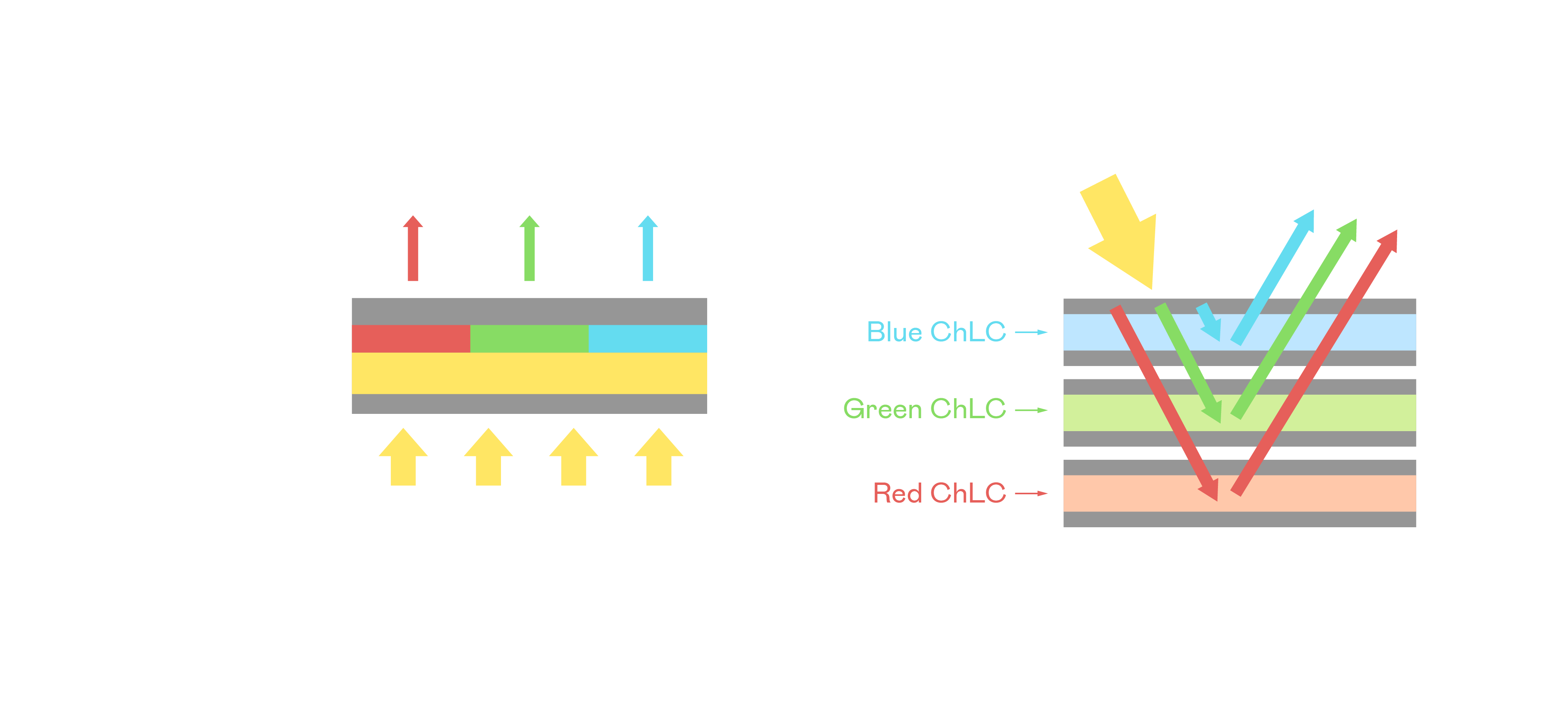 j9九游会首页登录胆固醇液晶显示器是由红、绿、蓝三层胆固醇液晶面板堆叠而成,并采用无彩色滤光片设计,减少环境光在反射过程中的损耗。